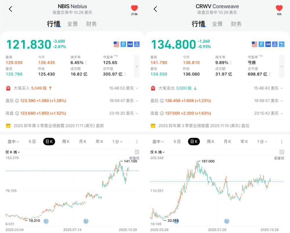 把它们看作“加了杠杆的英伟达”可能更贴切,这意味着,它们的涨跌波动,往往会比英伟达来得更早、更猛。市场上任何关于“AI泡沫要破”、“数据中心需求见顶”的风吹草动,都可能让这两只股票率先跳水。