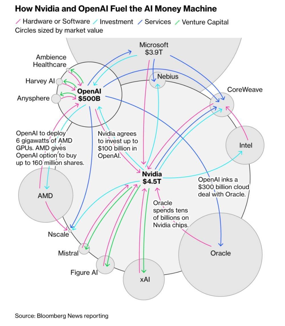看明白了吗?资金就像血液一样,在英伟达、AI模型公司、云服务商和资本市场之间高速循环。